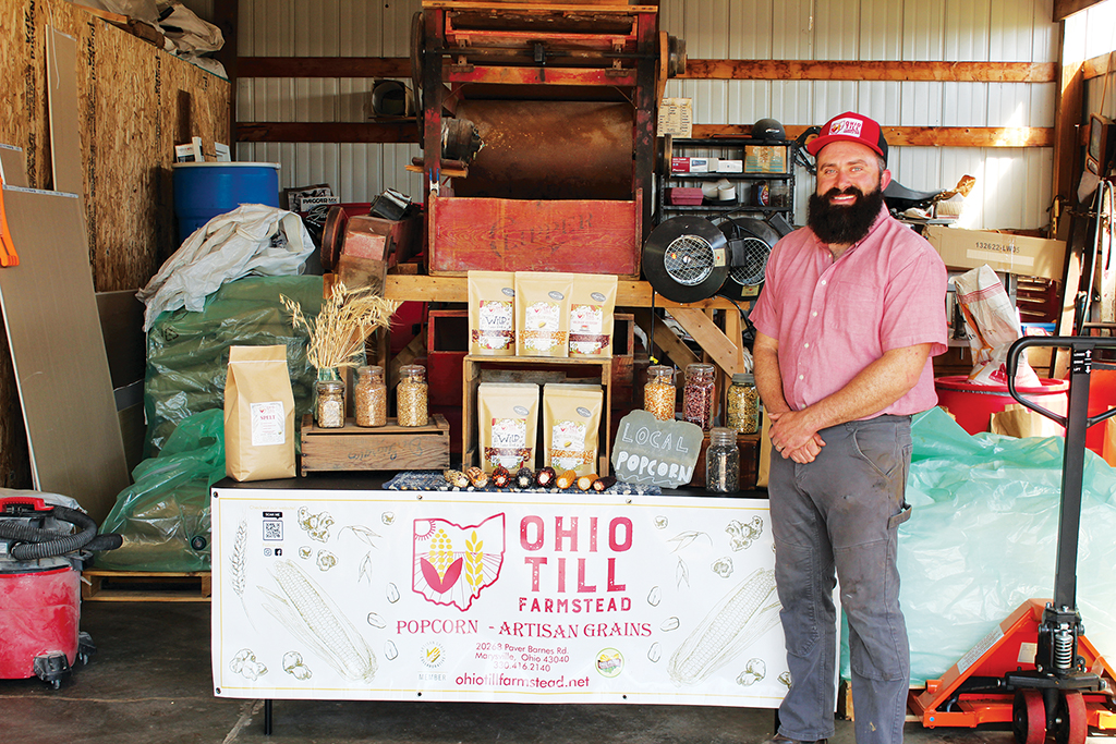 First-generation farmer Tim Schacht raises specialty grains at Ohio Till Farmstead near Marysville, Ohio. He started by raising raised popcorn and oats the first year and since then he’s added heirloom corns, food-grade soybeans, einkorn, spelt, black oil sunflowers and hard red spring wheat. (Gail Keck photo)