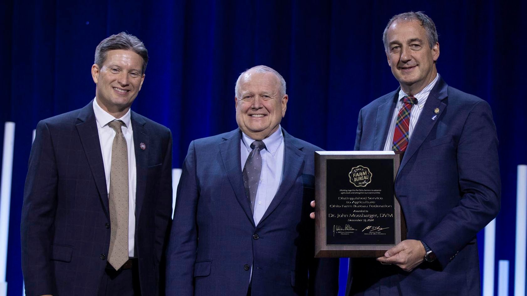 Three individuals received OFBF’s Distinguished Service Award for lifelong contributions to Ohio agriculture, including John Mossbarger of Fayette County, a longtime veterinarian and Standardbred breeder.