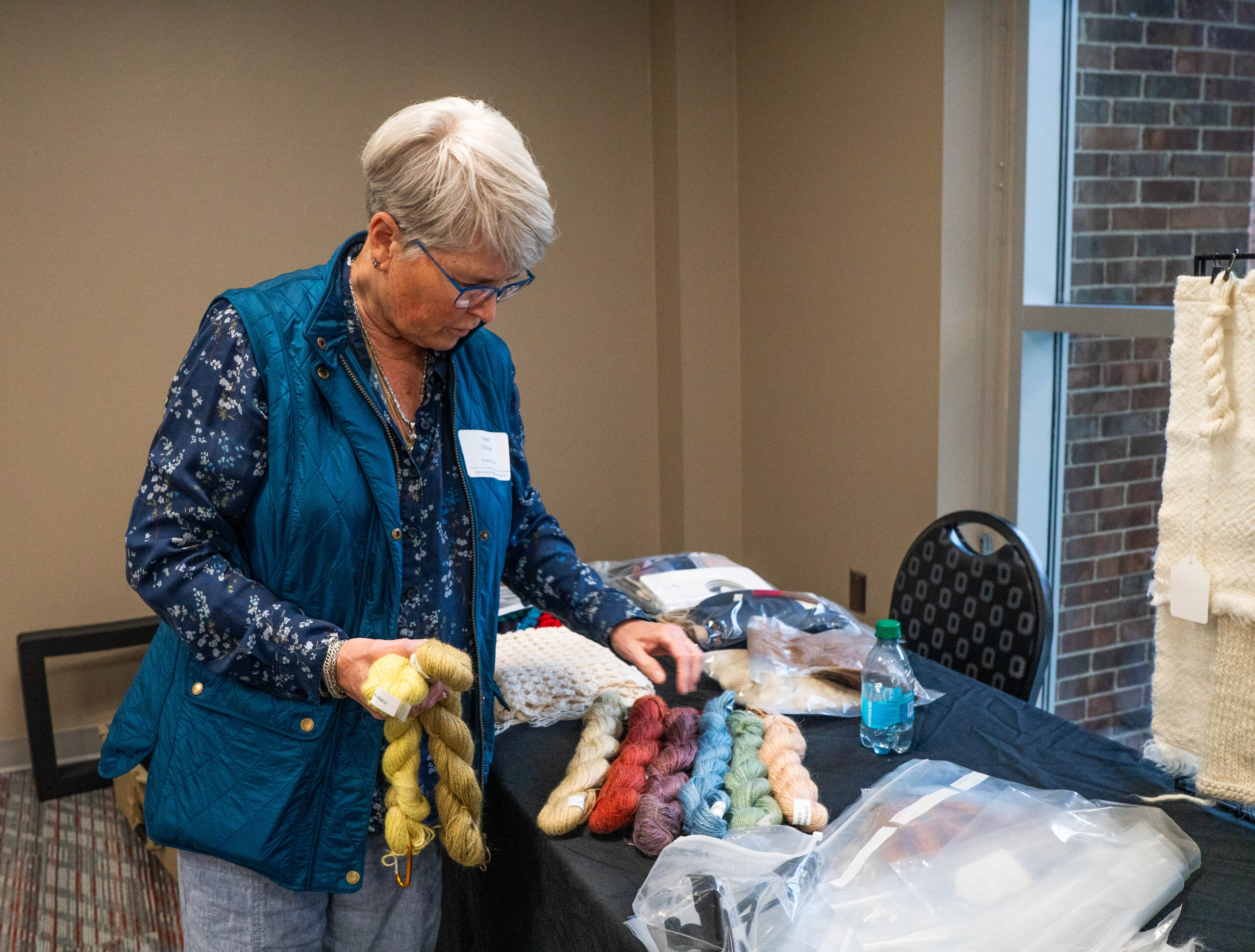 Shouvlin has sold her dyed yarn and wool products at fiber festivals and local stores, but like most wool producers and other natural fiber farmers, finding a place that will take the yarn and process it into fabric is a challenge. It can be expensive to ship yarn to manufacturers, which are not usually local, and hand-weaving the yarn is time-consuming. That’s why Shoulvin joins a cooperative to make her alpaca products.