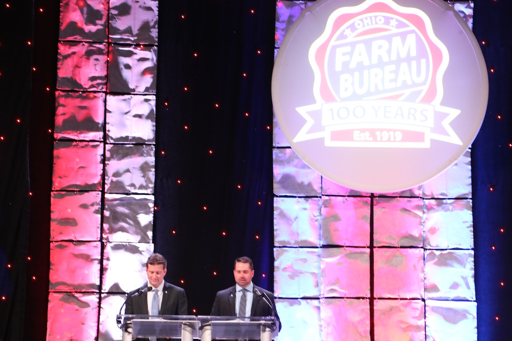 Ohio Farm Bureau Executive Vice President Adam Sharp (left) and President Frank Burkett, at the Ohio Farm Bureau annual meeting in 2018.