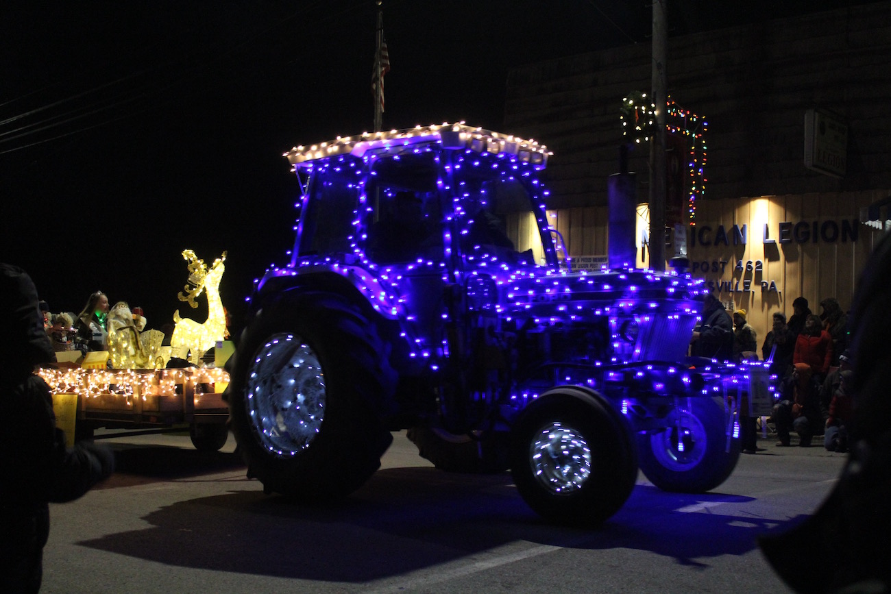 The parade began in 2014 with six lawn mowers. This year, about 90 tractors participated. Chad Loucks, one of the parade organizers, said Linesville now hosts the largest lighted tractor parade in the U.S.