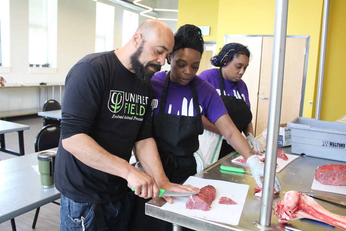They started teaching the butcher class as part of the 12-week culinary arts program at Community Kitchen  and offering butchery classes to the public. It’s a crash course into both the world of butchering and the meat industry.