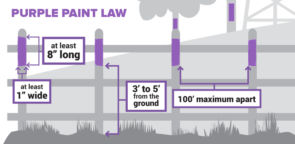 Under the new law, purple paint is now considered a form of lawful posting, although landowners can still use traditional posted signs as well.