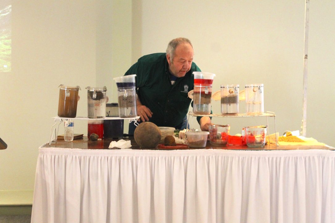 Leroy Bupp with the Pennsylvania No-Till Alliance demonstrated soil volatility to the audience, visualizing the qualities of healthy soil.