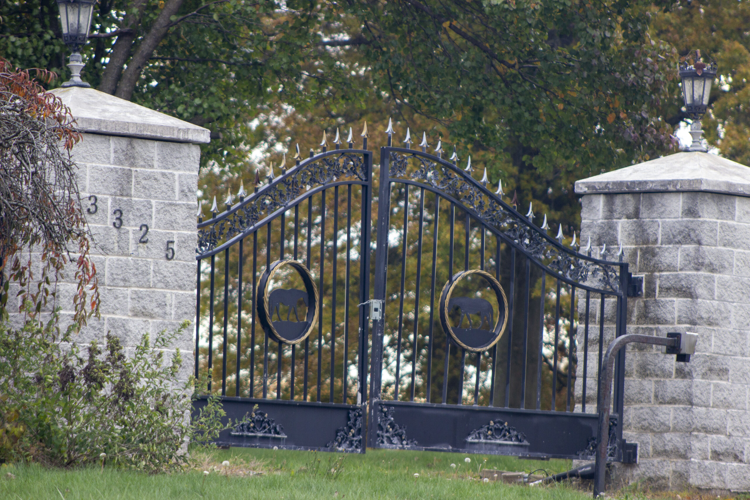The front gate of the Pure Gold Stables property in Salem, Ohio, on Nov. 3. (Paul Rowley Photo)
