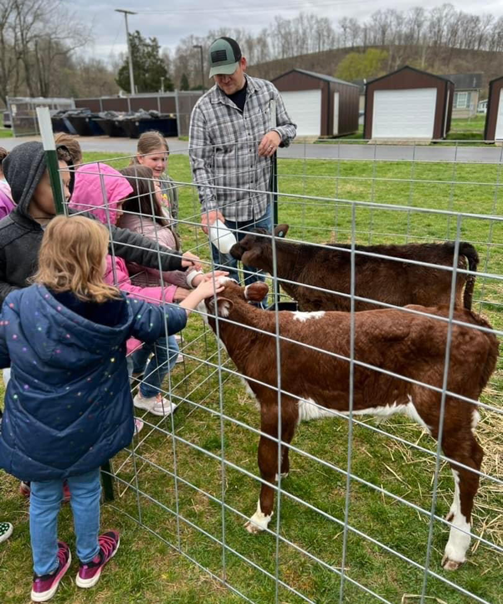 Students from Southern Local had the opportunity to pet two baby calves at the Racine Southern FFA petting zoo. (Submitted photo)