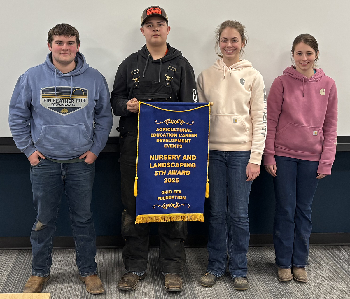 With a combined score, Haley McNaull and Brandon Keiser finished second in ZTR mowing and third in mid-sized mowers. Hannah McNaull and Thomas O’Toole worked together on tree planting and sod laying to secure first place in tree planting. Haley McNaull’s overall score put her in third place. The team received a banner for finishing fifth in the state, while McNaull and O’Toole received a plaque for taking first place in tree planting.
