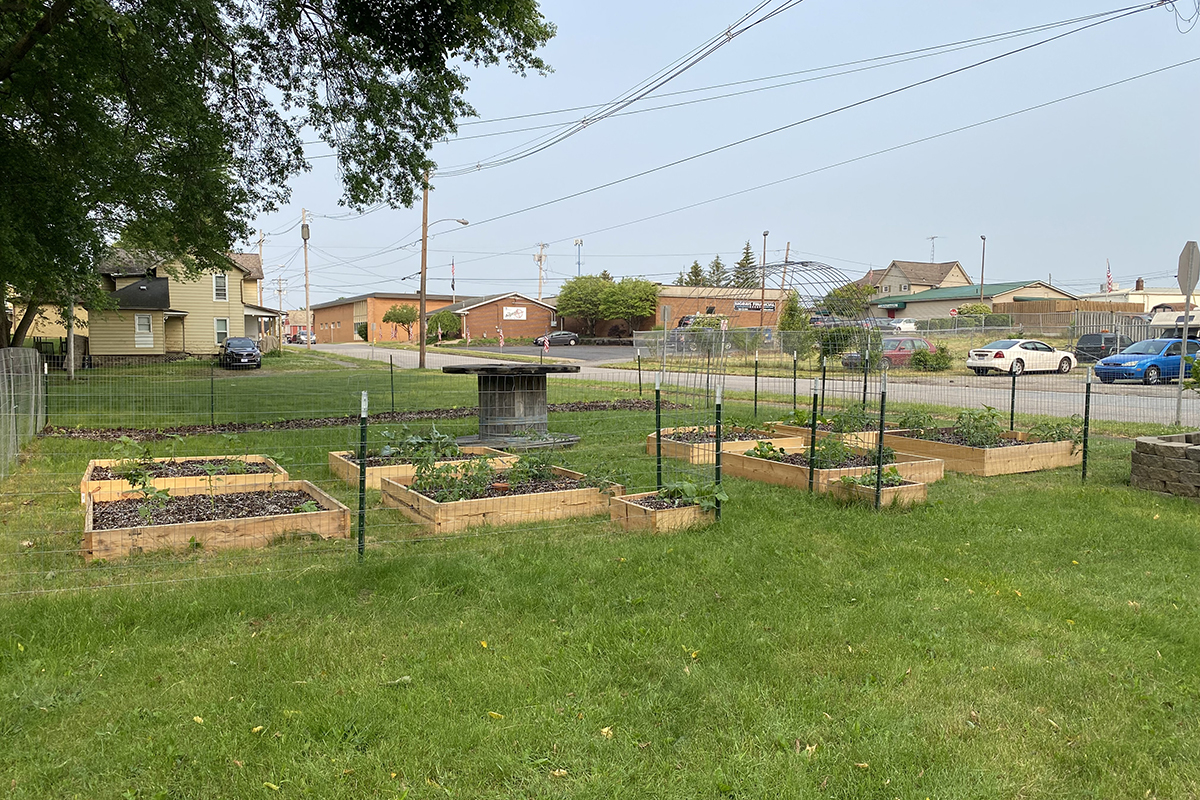 The community garden appeared about a month ago, in a previously vacant lot, on the corner of South Lincoln and Columbia Street, across the street from Gilbert’s Auto Service LLC. (Sara Welch photo)