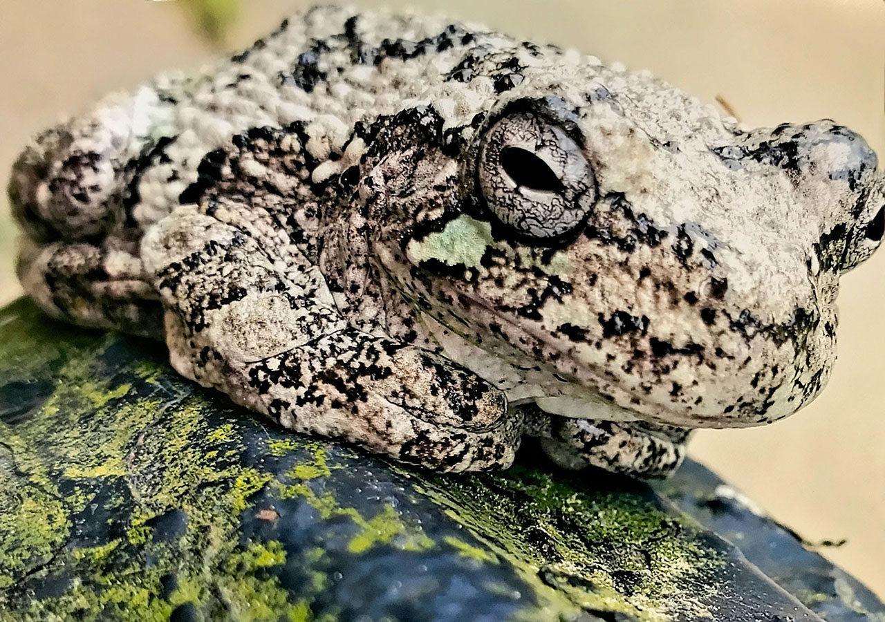 Gray tree frogs are found throughout Ohio and are more often heard than seen. They can change colors from gray to green to blend in with their background. These frogs are climbers and spend much of their lives off the ground. Because of this, they can be difficult photo subjects.