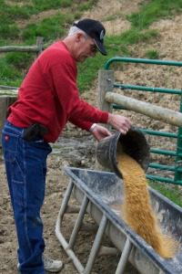 He doesn’t raise grain but he does purchase some for the cattle in order to make handling them a little easier.