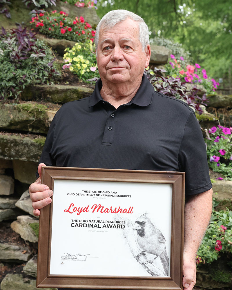 Marshall, of Farmdale, has been volunteering for more than a decade with Ohio State Parks and the Army Corps of Engineers to monitor bluebird boxes. He offers his time to train volunteers and educate the general public on why cavity nesters, like bluebirds, warblers and owls, are an important resource for conservation in declining habitats.