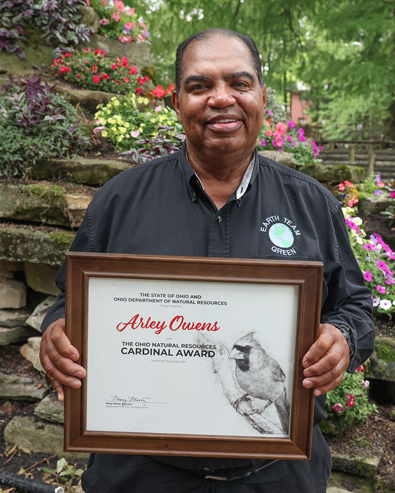 He also monitors man-made nests, keeping meticulous records about species’ populations. He is active in the Ohio Bluebird Society, the Ohio Ornithological Society and North American Bluebird Society, and continues to educate the public on wild-bird conservation.