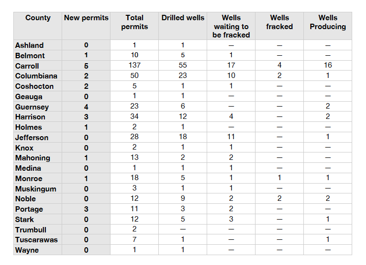 SALEM, Ohio — The number of wells waiting to be fracked outnumbered the number of permits issued by the Ohio Department of Natural Resources during September.