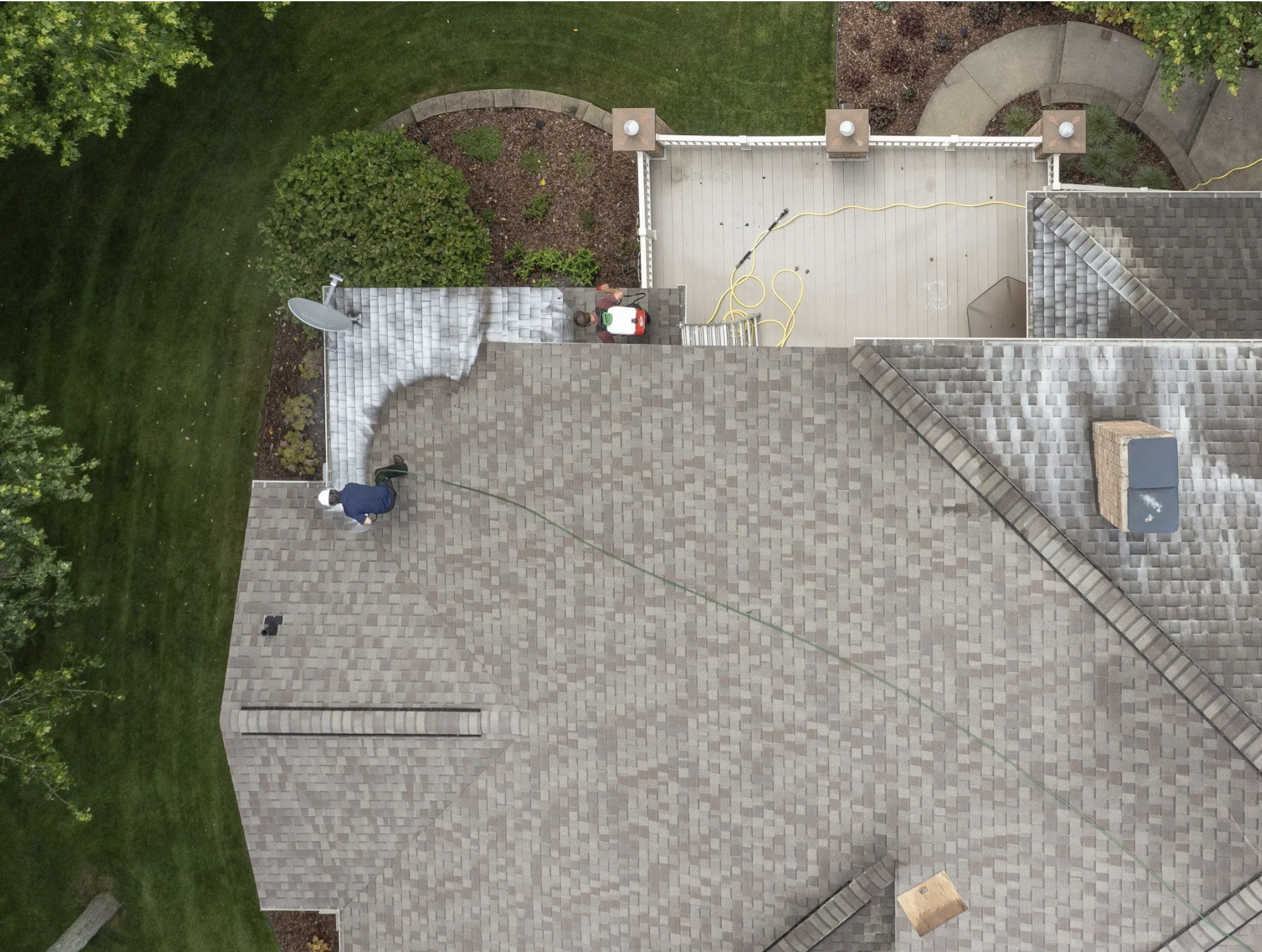 The company then rejuvenates the shingles by using a plant-based spray called Reactiv8, a relatively new treatment in the roofing industry. Similar technology has been used for years to repair other asphalt products like driveways; Reactiv8 was created roughly 3 years ago for asphalt shingles.