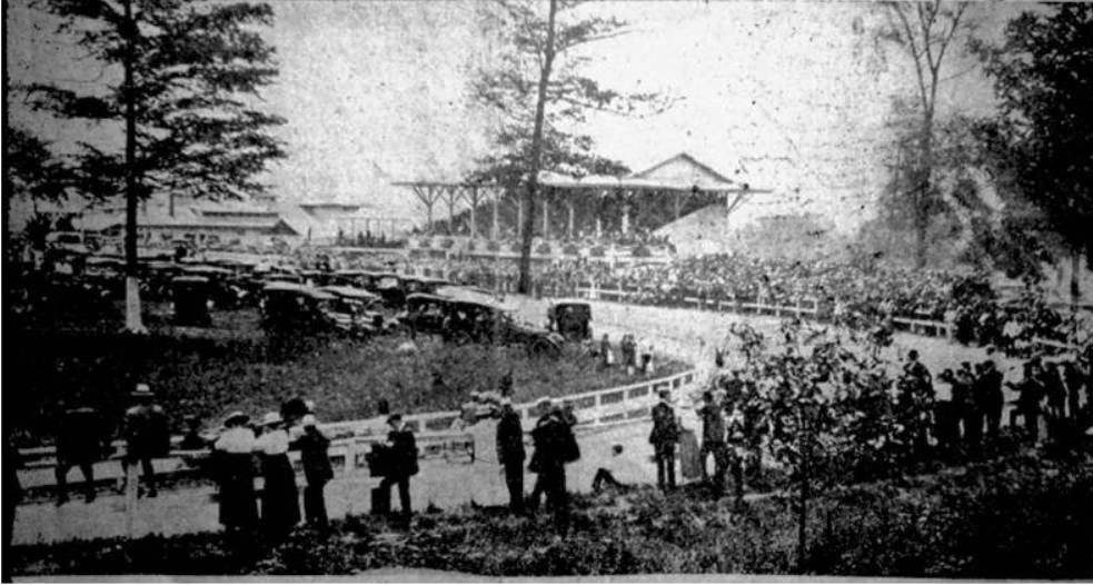 With parking on the infield of the race track, The Horse Review observed “The grandstand was inadequate and so many people came in autos that their passage across the track interfered somewhat with the racing.