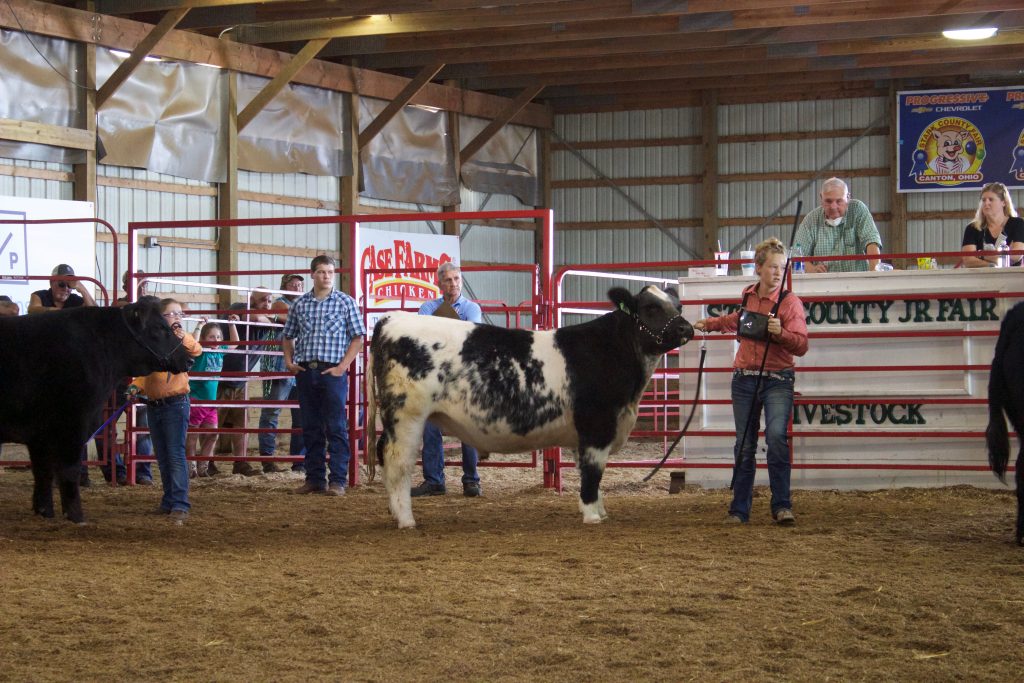 Addy Brenner leads Stetson, one of her market steers, during the market beef show at the Stark County Fair, in Canton, Sept. 3. (Sarah Donaldson photo)