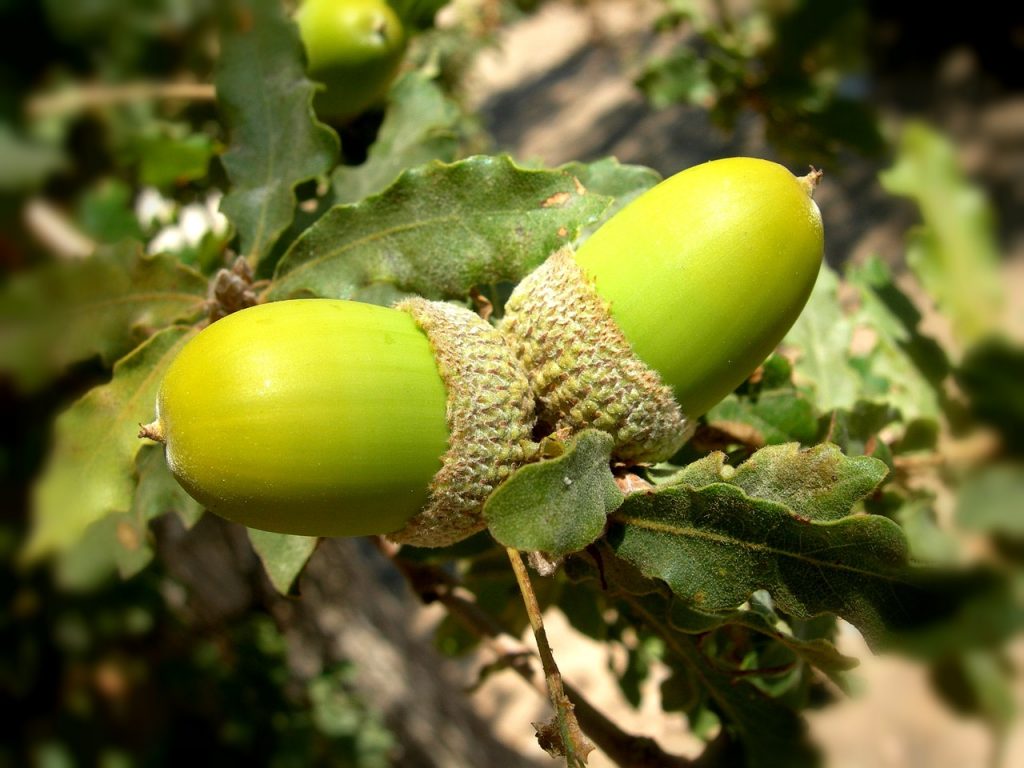 Acorns come in two basic types, red and white, based on the type of oak tree. Red oak acorns take two years to develop, and the acorns are bitter, containing a large amount of the chemical tannin. White oak acorns take only one year to develop and have a sweeter taste. These differences cause periodic fluctuations in statewide acorn abundance. Low mast production years are a normal part of this cycle, and wildlife adapt to find alternative food sources.