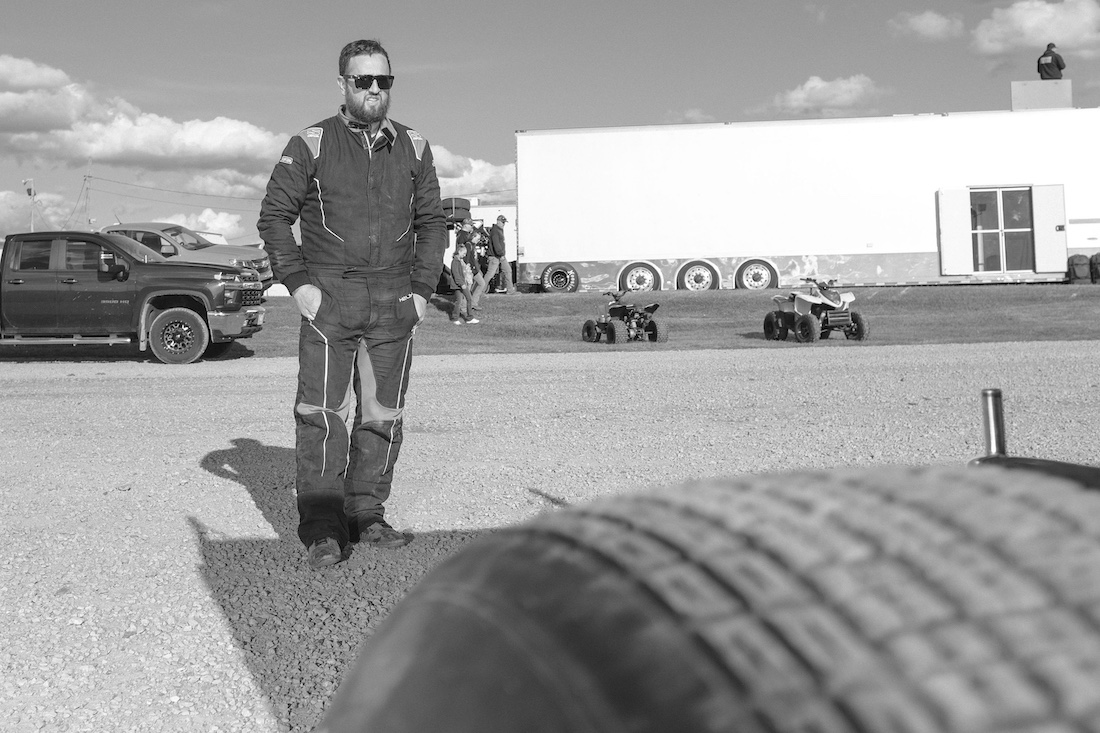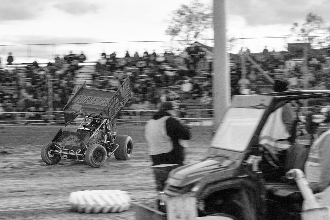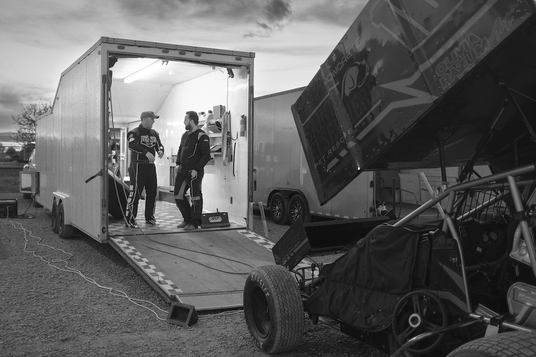 The World of Outlaws Sprint Car Series descended on Attica Raceway Park. Touring sprint car teams with multi-million dollar budgets rub elbows with racers like Bryan, 305 sprint car racer with a shoestring budget and a passion for refining his craft. Walking past the rows of massive semi-trailers operated by big name World of Outlaws teams, Razum on the phone with Nate Colson, a friend and mentor who coaches him through the finer points of entering Attica’s challenging turn 1.