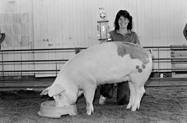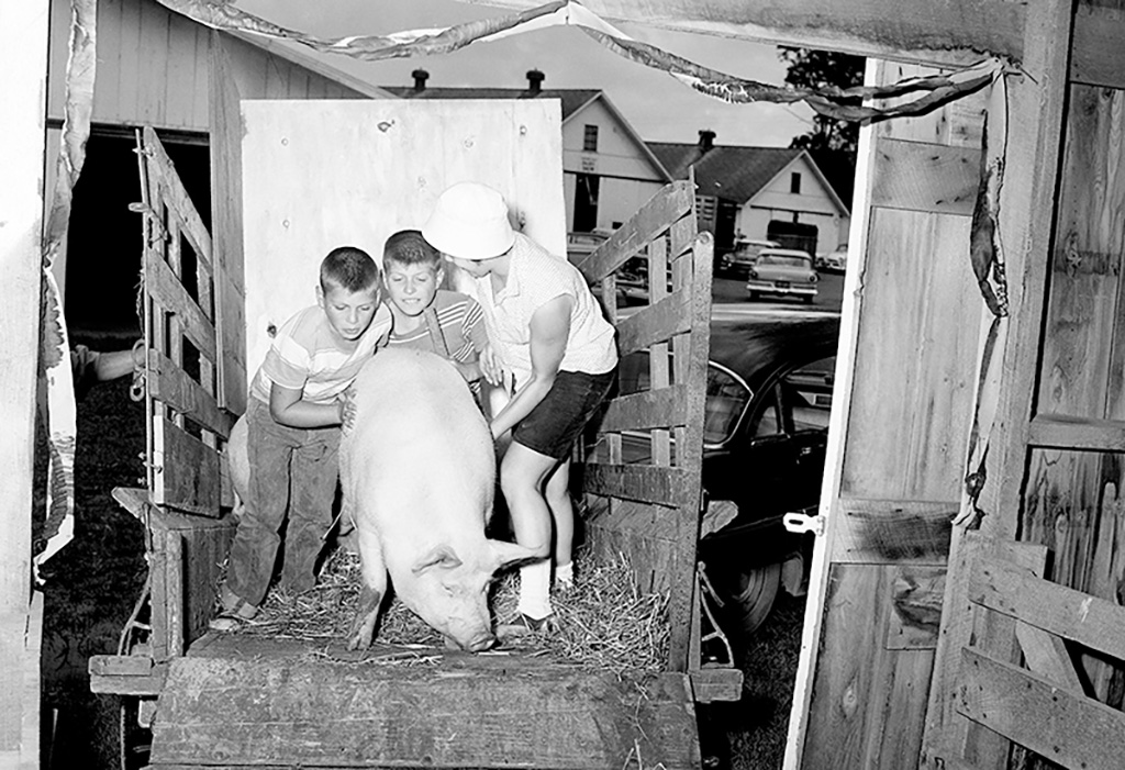 A few girls showed livestock in 4-H but they were generally not allowed in FFA in the 1950s. And the livestock that was exhibited back then! The hogs appear to have changed almost as much as the farm machinery displays.
