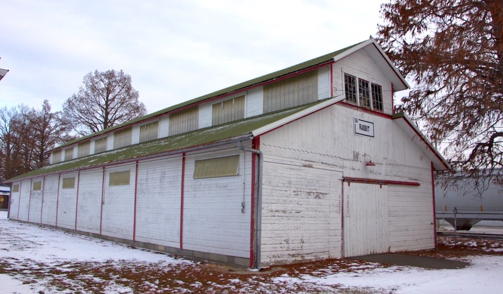 In order to make room for a new show arena and livestock barn, four buildings, including this rabbit barn, will be removed or relocated on the Wayne County Fairgrounds. (Catie Noyes photo)