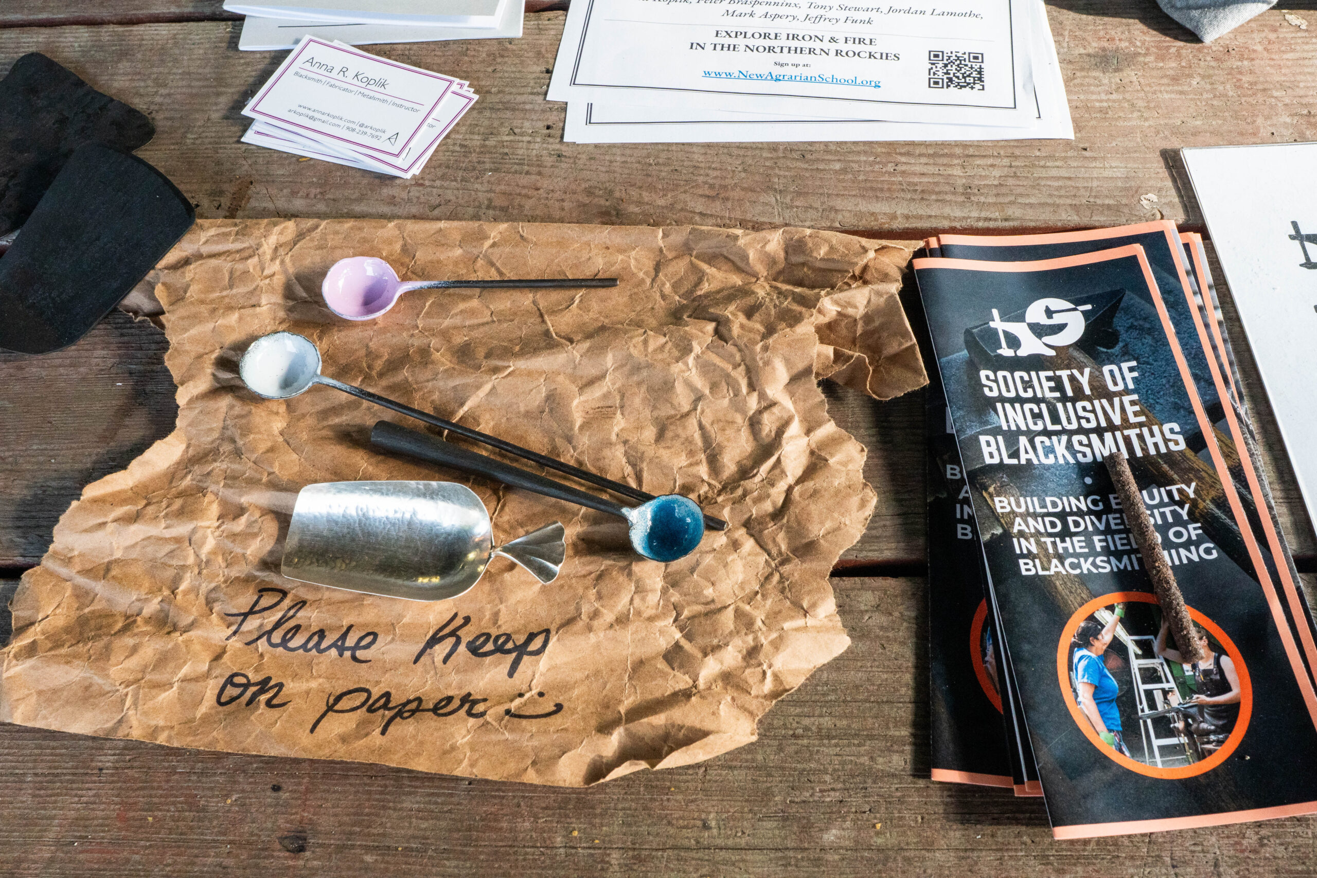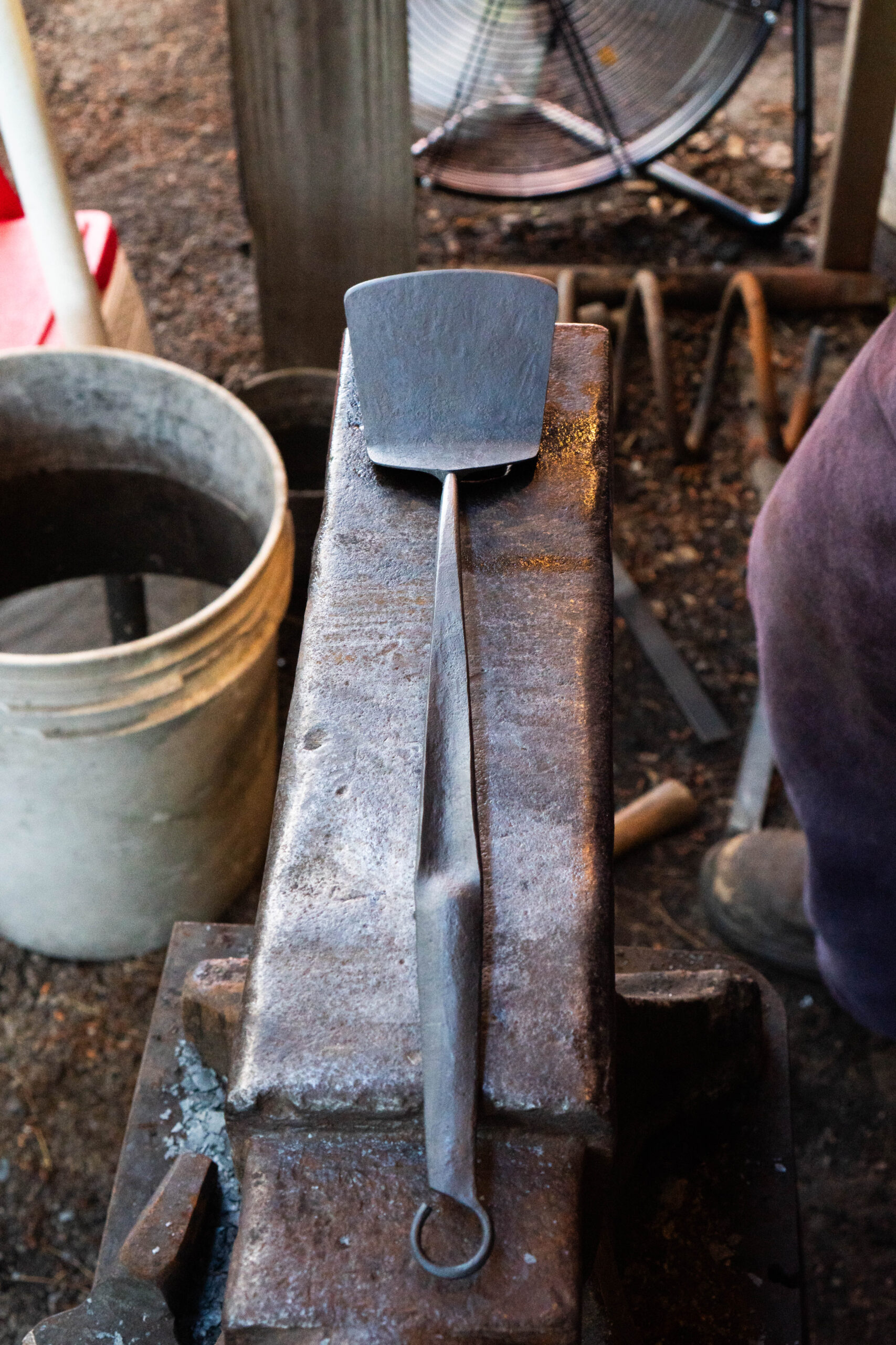 Now that Anna is a journeyman blacksmith, she has demonstrated her specialty of making spatulas, spoons and scoops at conferences across the country.