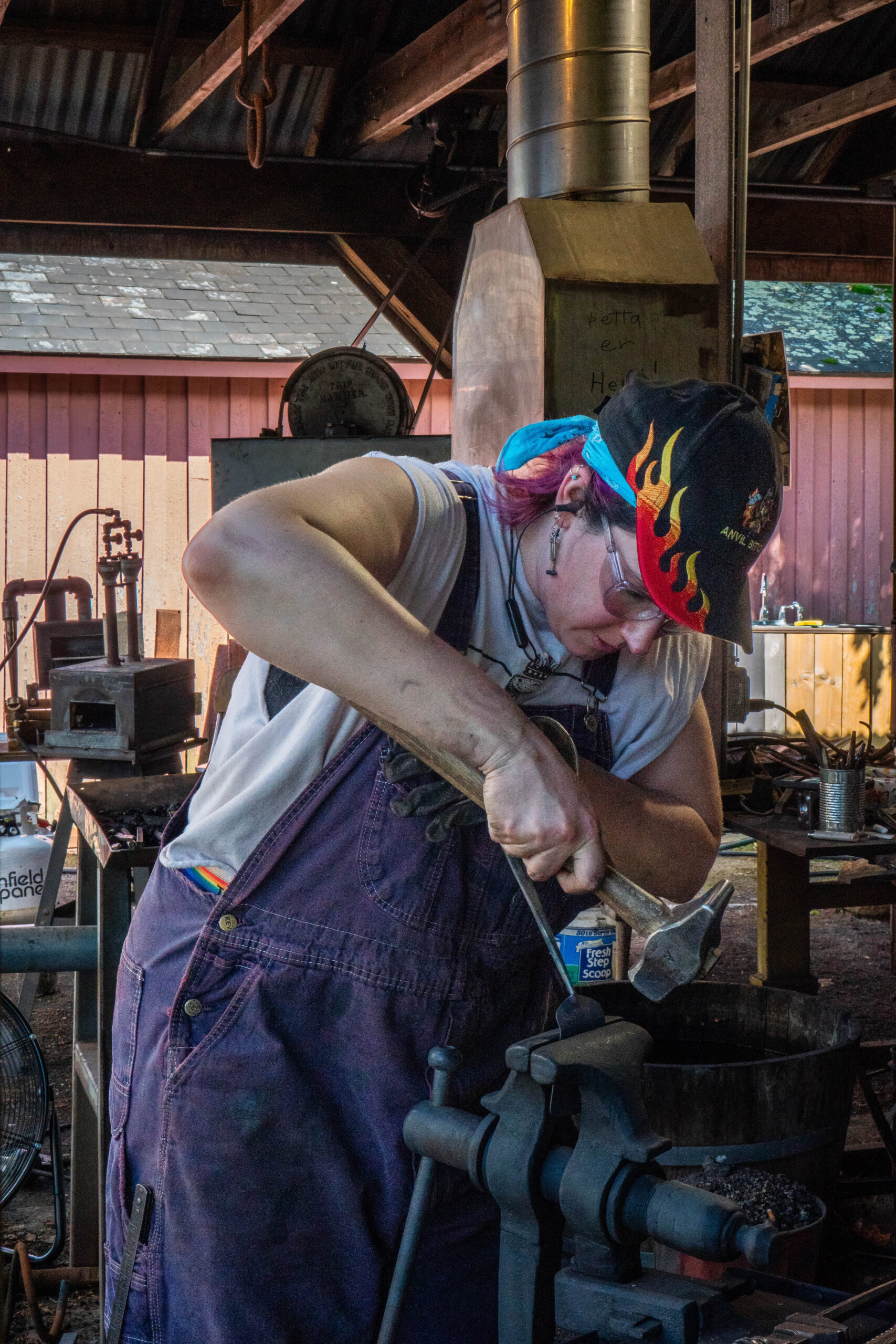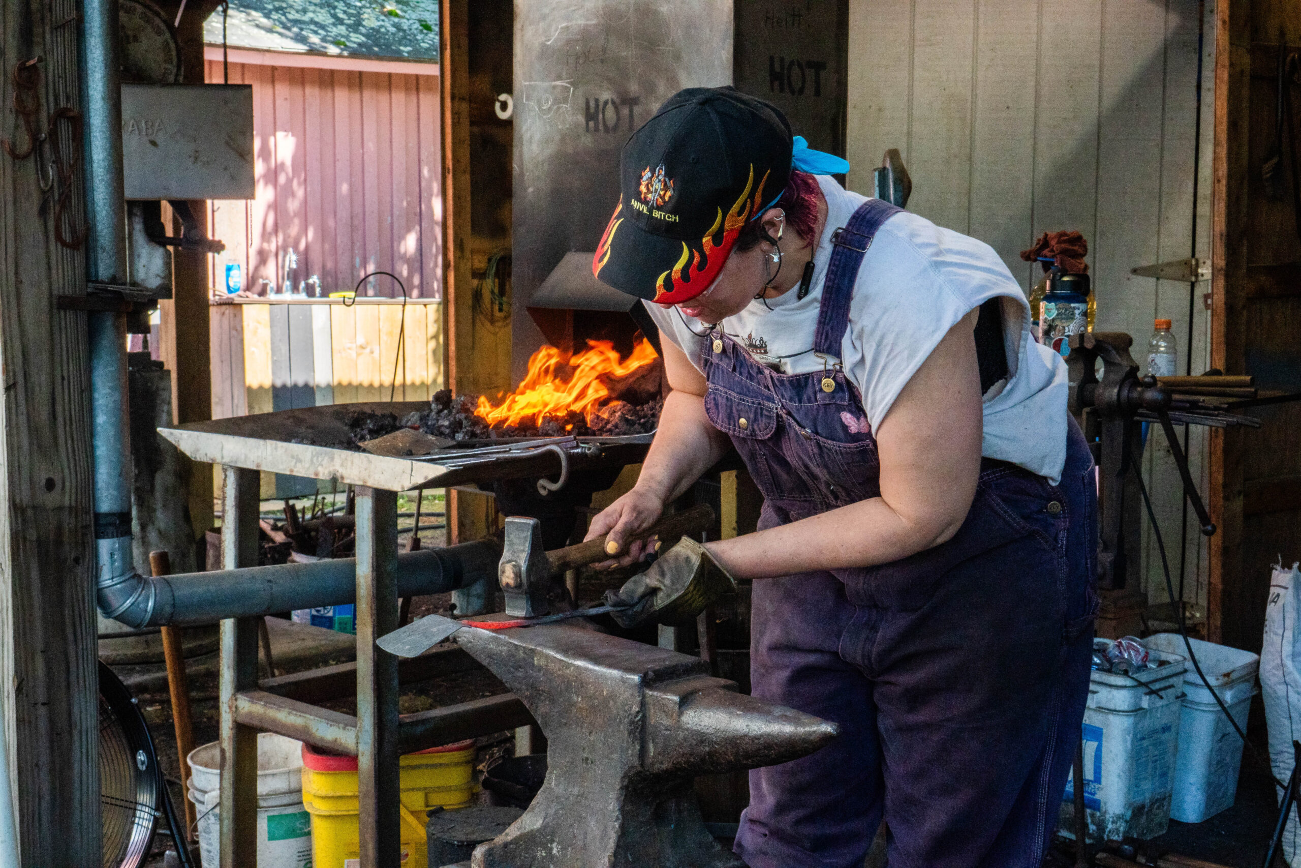 It took years for her to finally meet her women blacksmith role models. Despite this, she stayed in the field because of her passion for the work and how welcoming the community is. Now, she aims to create space for female blacksmiths through her work, traveling the country and teaching the art of blacksmithing.