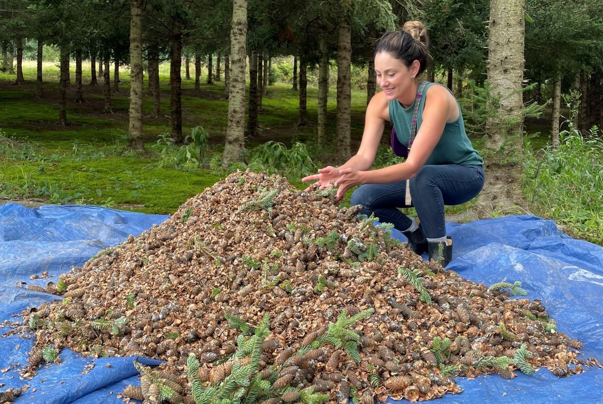 The cones are dried through the fall and processed after the holidays to extract the seeds.