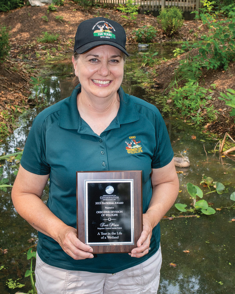 “A Year in the Life of a Wetland” was awarded first place in the category for general interest magazine article. Written by Wildlife Communication Specialist Kelly Schott, the winning article appeared in the 2022 Issue 4 edition of Wild Ohio magazine, which highlighted the H2Ohio program and the importance of wetlands in conservation. The article celebrated the changing flora and fauna of wetlands through the four seasons as well as the associated wildlife diversity.