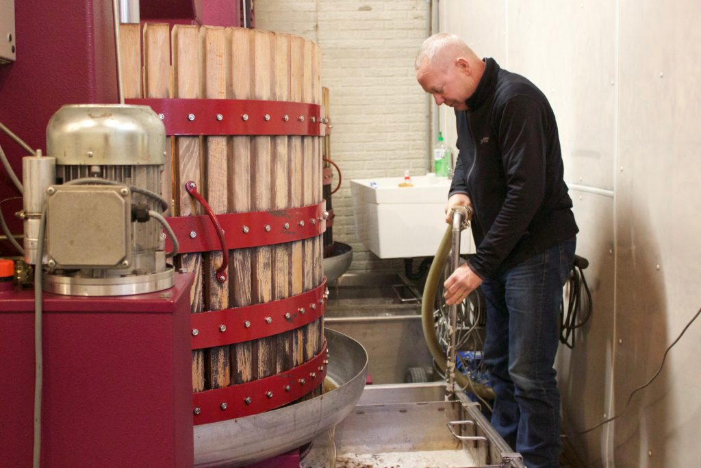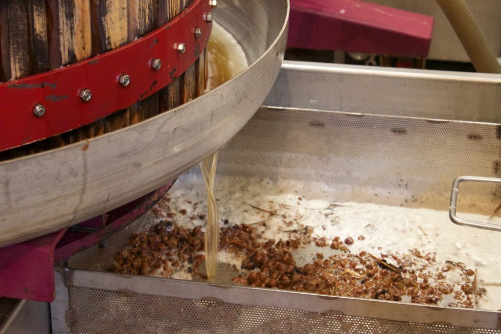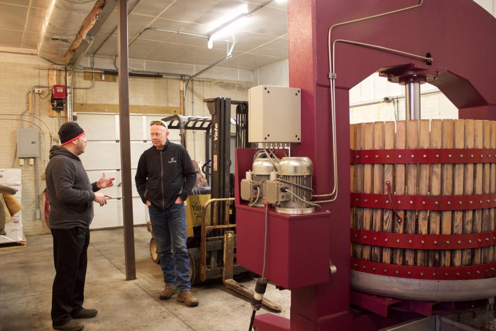 Employees at the vineyards and Debevc Farm have been harvesting grapes for ice wine over night. At 10 a.m., Sigel is pressing the harvested grapes before they thaw at a nearby location.