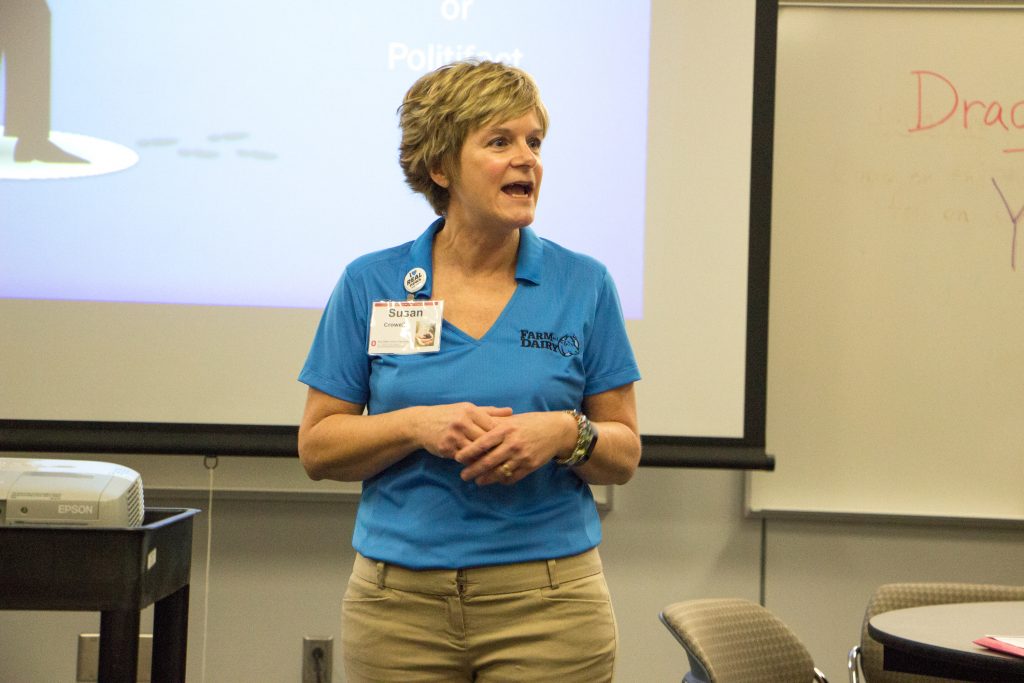 You are not fake news Farm and Dairy Editor Susan Crowell encouraged women to share their stories because consumers want to get real news from real farmers. “Misinformation is by far the greatest threat to agriculture,” said Crowell. She encouraged the women in the room to reach out to local reporters, to be honest, and to share real farm stories with them during the 2018 East Ohio Women in Agriculture Conference April 6. (Catie Noyes photo)