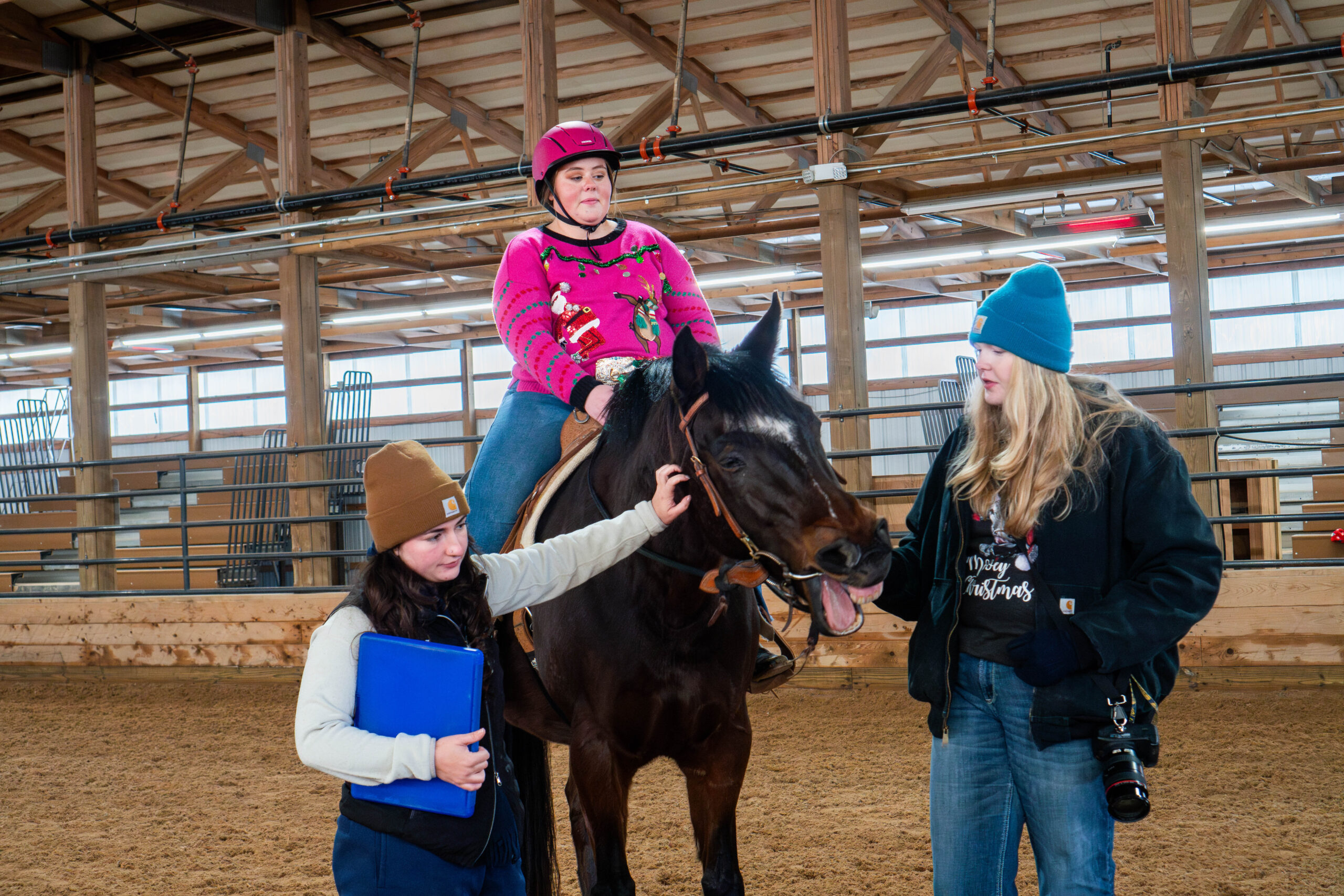 Contestants from far and near lined up outside the gate, ready to compete in WVU’s Equine Studies Ugly Christmas Sweater Horse Show on Dec. 8.
