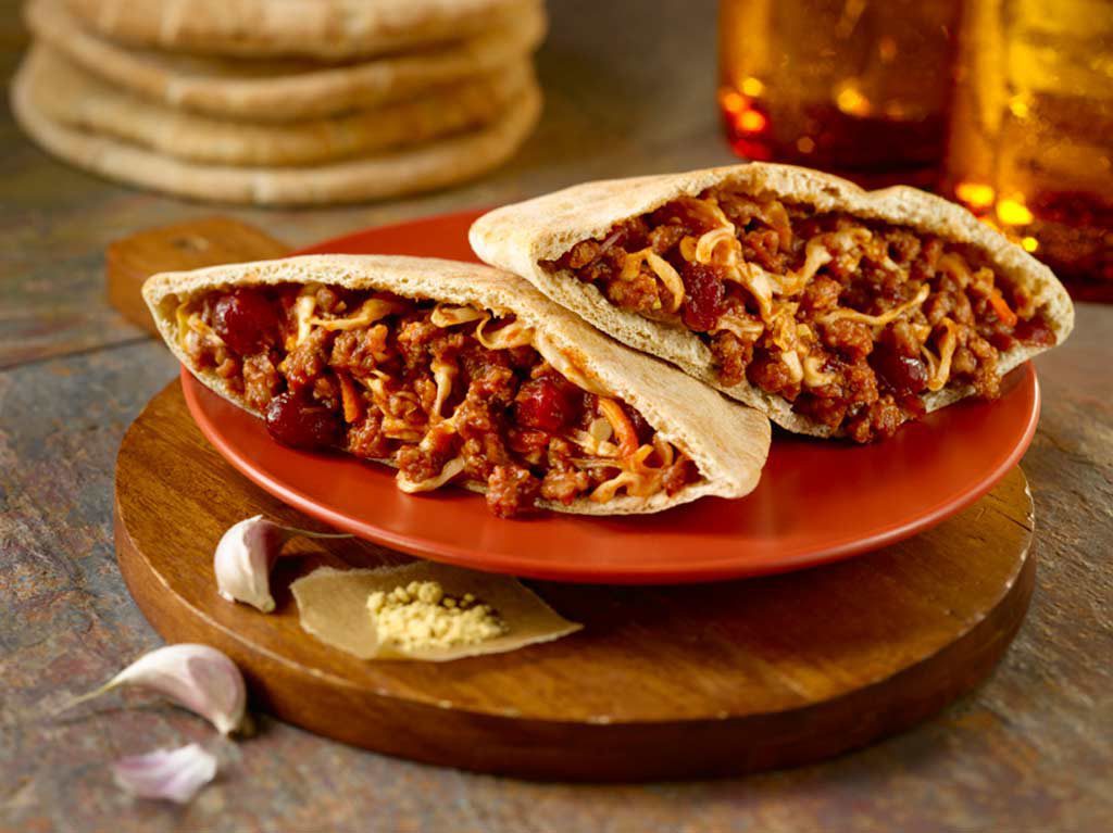 - Fill warm pita pocket halves with scant 1/2 cup beef mixture.