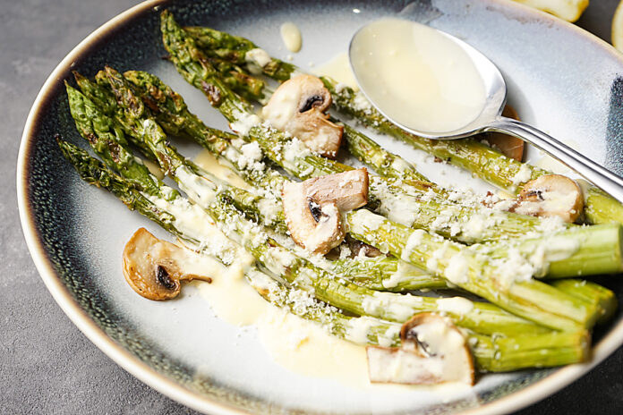 - Roast for 15 to 20 minutes until asparagus and mushrooms are just tender and nicely browned.