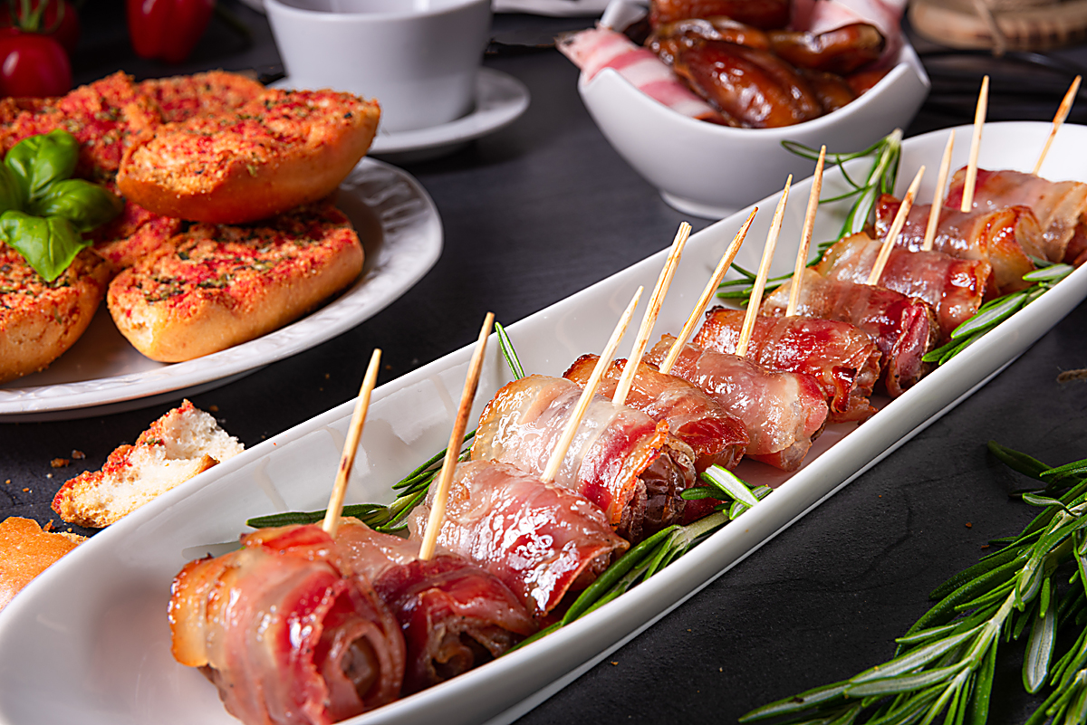 4. Bake the dates for 18 to 20 minutes, until bacon is crispy. Let cool at least 10 minutes and serve.