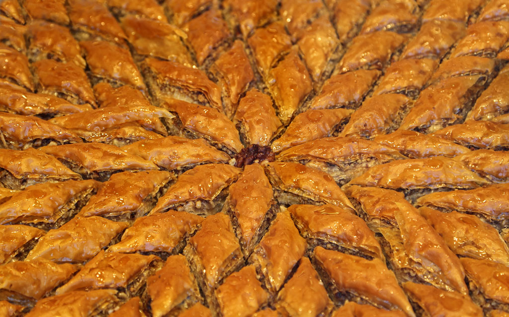 9. Spoon syrup over the hot baklava and let cool for at least 4 hours.