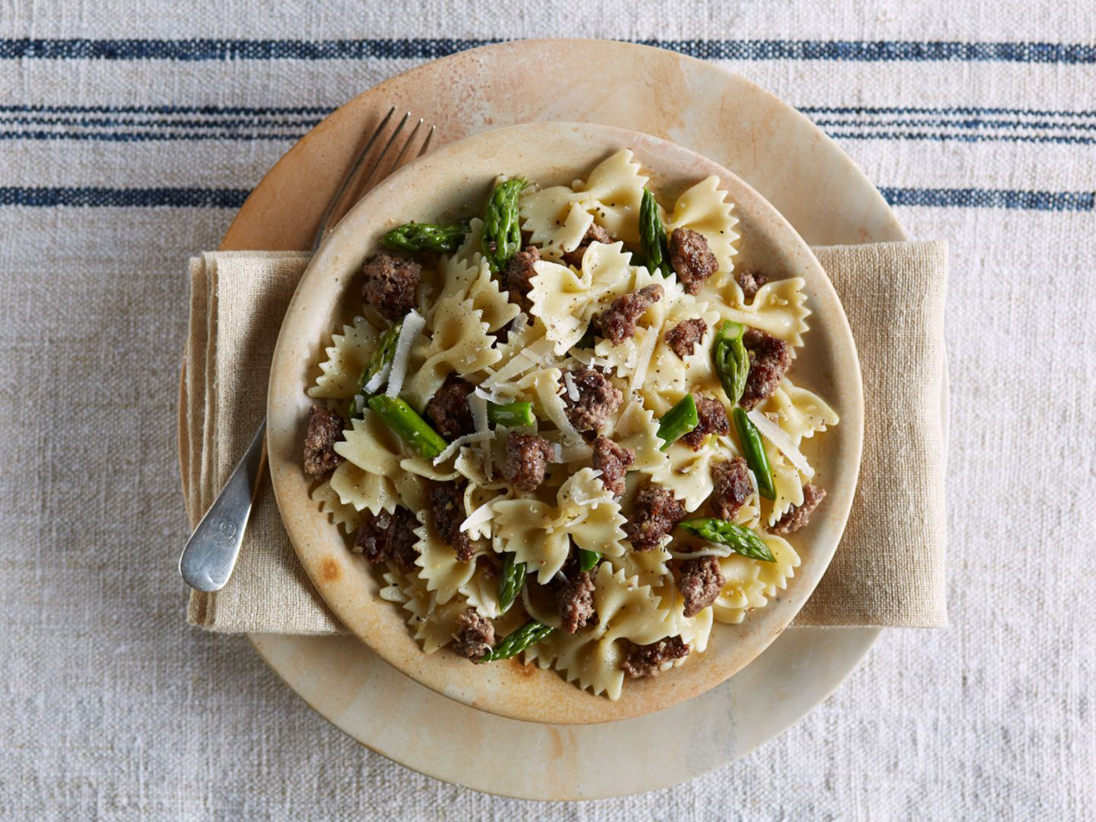 5. Combine beef mixture with pasta and asparagus in large bowl; toss well. Sprinkle with cheese, if desired.