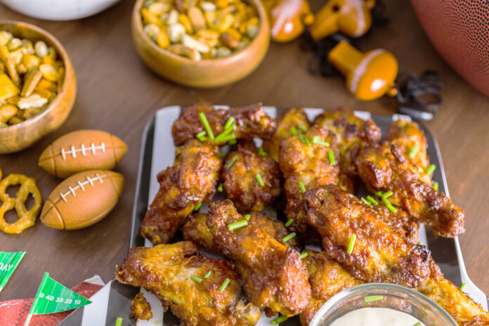 4. Preheat a deep-fryer to 400 F. Fry the wings until golden brown and crispy, 3 to 4 minutes.