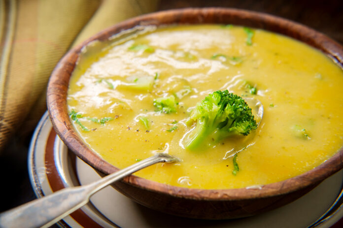 - Cut the broccoli into small bite-size pieces and place the broccoli, butter, onion, celery, minced garlic, salt and pepper in the crock pot. Mix the chicken broth with the cornstarch and stir this mixture into the crock pot.