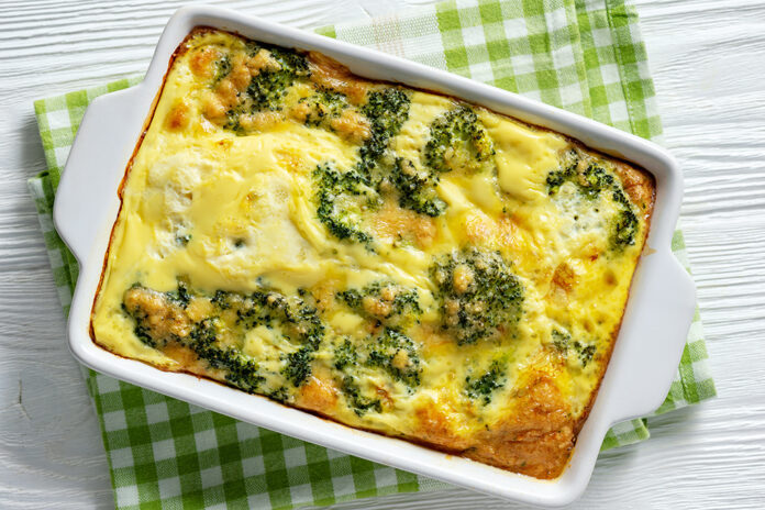 3. Combine broccoli, cottage cheese, eggs, Cheddar cheese, butter, flour, salt and pepper in a large bowl. Spread into the prepared casserole dish.