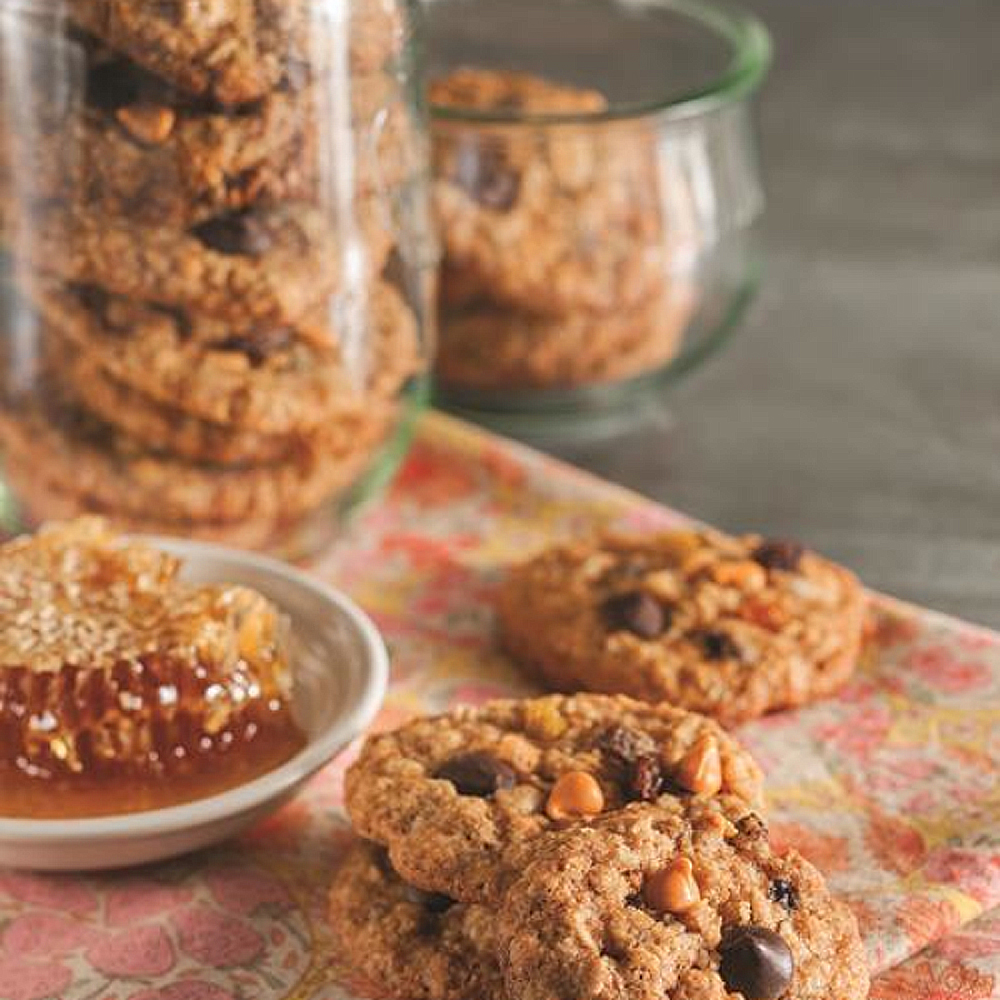 2. In separate bowl, mix together oats, flour, salt, cinnamon and baking soda; blend into honey mixture. Blend in raisins or chips.