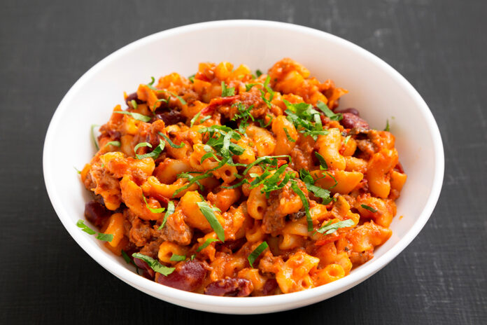 3. Stir in chili, corn and macaroni; heat through. Sprinkle with cheese.