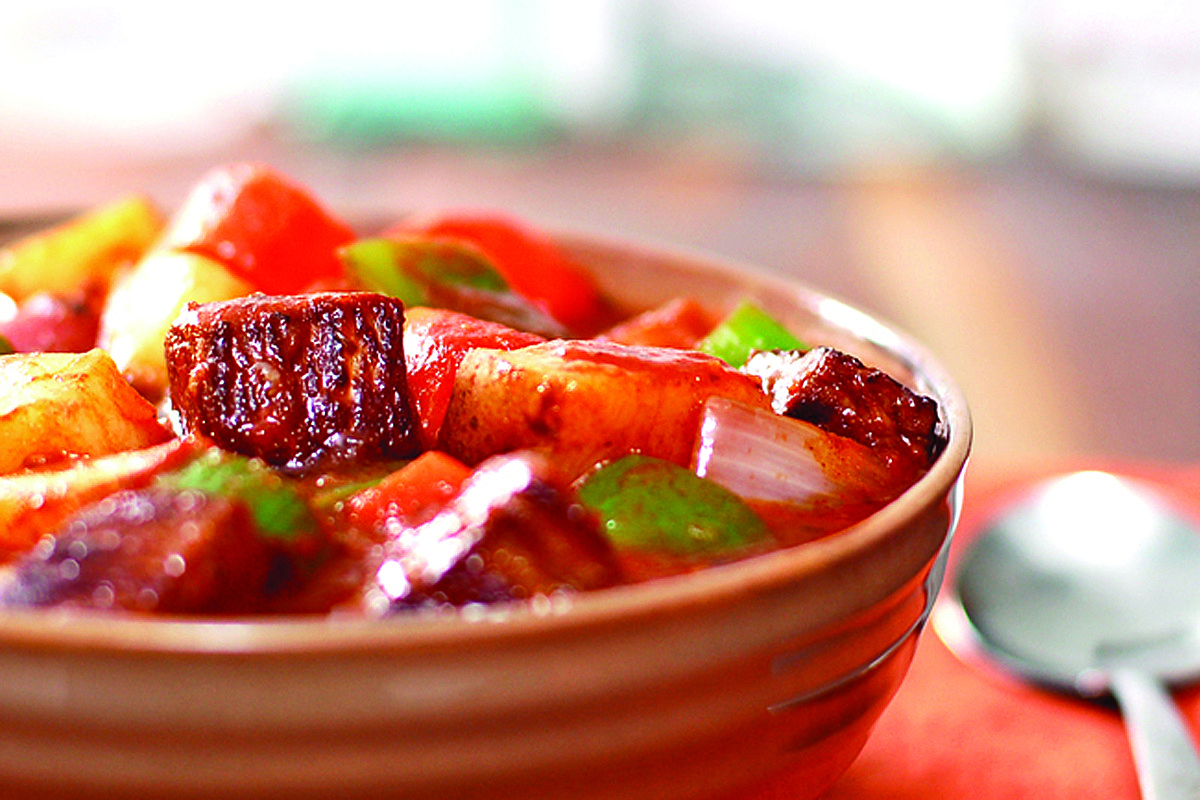 • 2 pounds Laura’s Lean Eye of Round Roast cut into 2-inch cubes