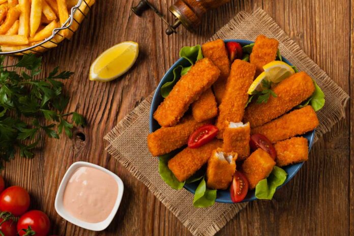 - Cook for 8 minutes, carefully flip each fish stick over and continue cooking for 7 minutes.