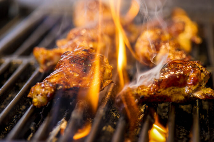 3. Let chicken get charred and cooked through, about 8 minutes per side, basting with marinade often.