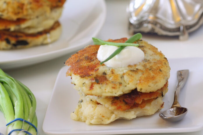 3. Heat oil in a large skillet over medium heat. Drop batter by 1/3 cupfuls into oil and flatten slightly. Fry on both sides until golden brown.