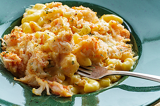 - Gently stir in 1 cup of the lobster meat and spread into the prepared pan. Add remaining lobster meat on top and sprinkle with the topping mixture.