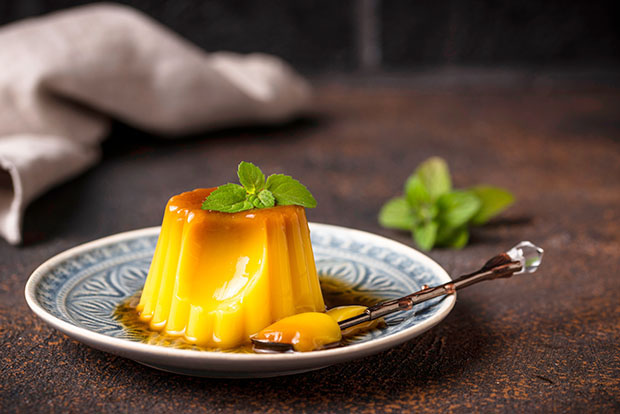 2. Carefully pour caramel syrup into a flan mold. Set aside to cool.