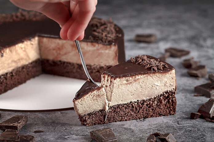 13. Spread the chocolate mousse on top of the cooled brownie layer.