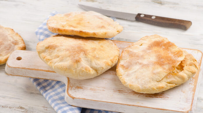 - Place a round on a lightly-floured work surface and flatten with your hand. Roll out into 1/8- to 1/6-inch thick rounds about 6 1/2 inches wide.