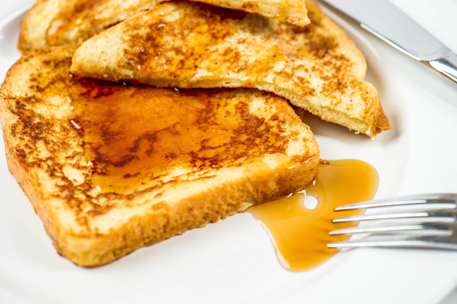 4. Pour into large baking pan, add bread and soak in mixture approximately 15-20 seconds per side.